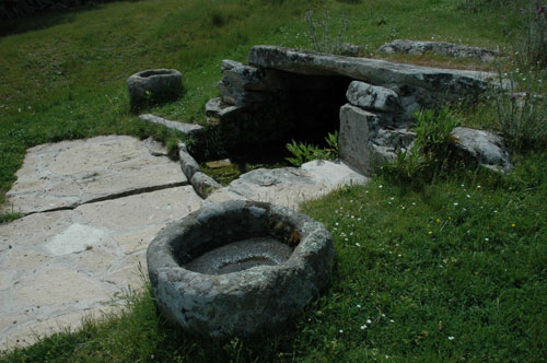 Junto a muchas de ellas están las pilas de piedra de donde bebió el ganado al retornar sediento en tiempos de trilla o de sementera y que calman la sed de los pocos animales que transitan por sus cercanías. También podemos encontrar en muchas de nuestras fuentes sobre todo las que están en los montes y valles más alejados, las piedras que hacen de asiento en los ratos de calmosa charla mientras el ganado pasta. Y es que la fuente fue siempre un lugar que propició el encuentro.
