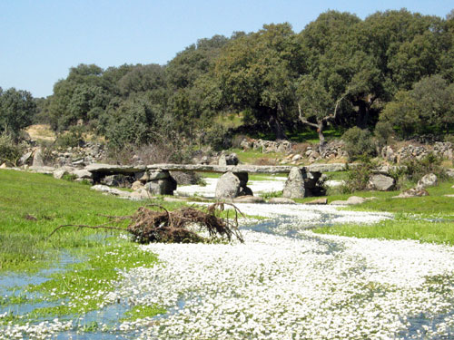 Puntones por los que ahora pasarán turistas de andar cansino en busca de algo diferente con lo que animar sus ajenas y forasteras emociones. Turistas que cruzarán las riveras y regatos de nuestro Sayago contemplando mientras pasan la pureza floral que flota sobre aguas limpias y cristalinas y escucharán si saben, la música sublime que sale del remolino cuando se queda abrazado a las piedras milenarias en los puentes y puntones de nuestras riveras.